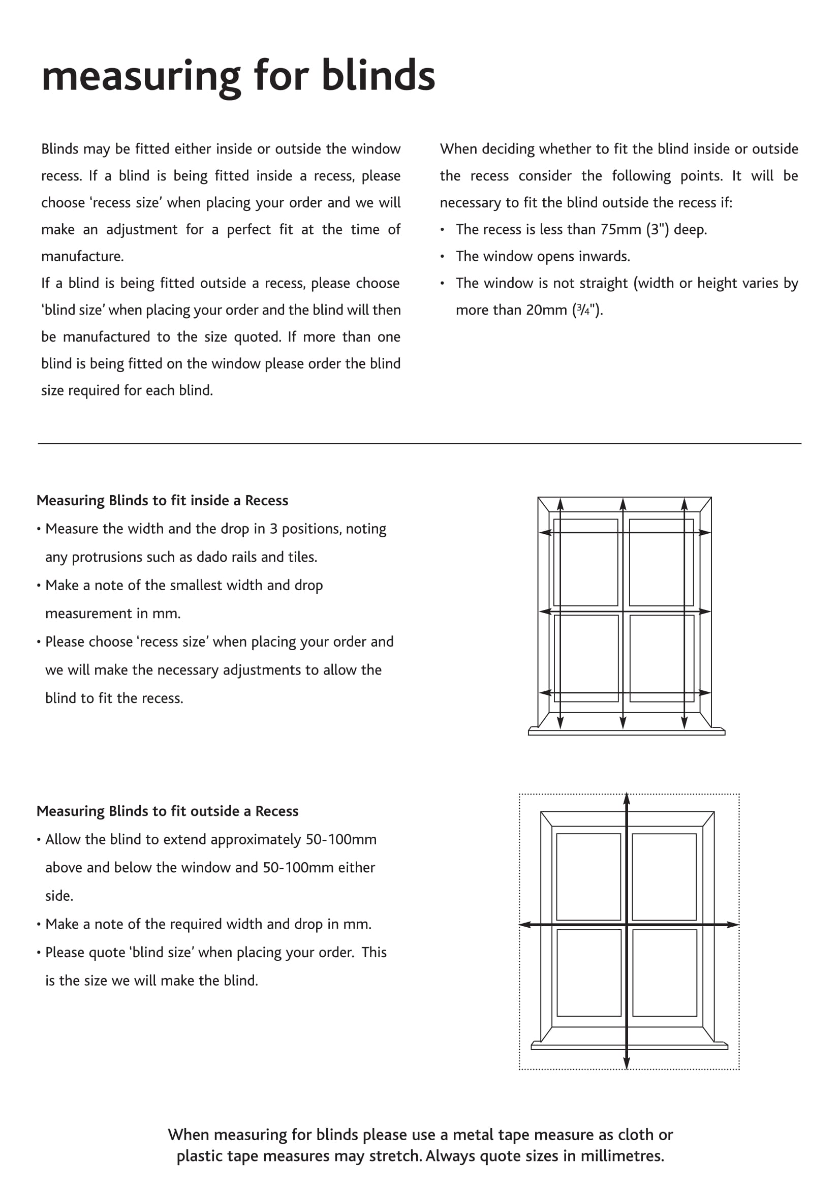 We offer a bespoke measuring and fitting service whereby one of our representatives will visit you at home, take measurements, offer advice around the best curtains or blinds to complement your home interior and return to fit your chosen product.